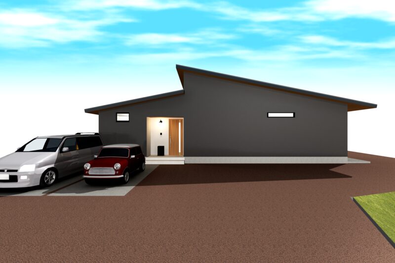 外観は落ち着いた外壁材に、シンプルな片流れ屋根でスタイリッシュに