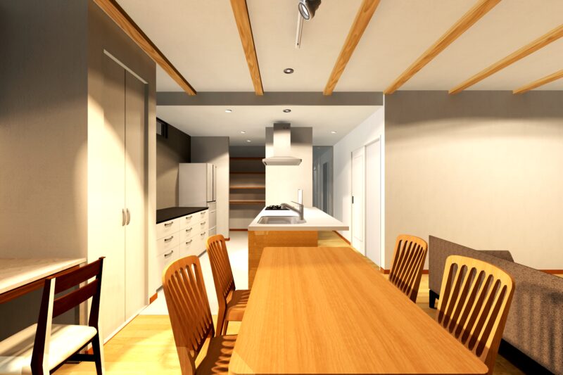 LDKの空間は天井高を少し上げることで、解放感あふれる空間にしています